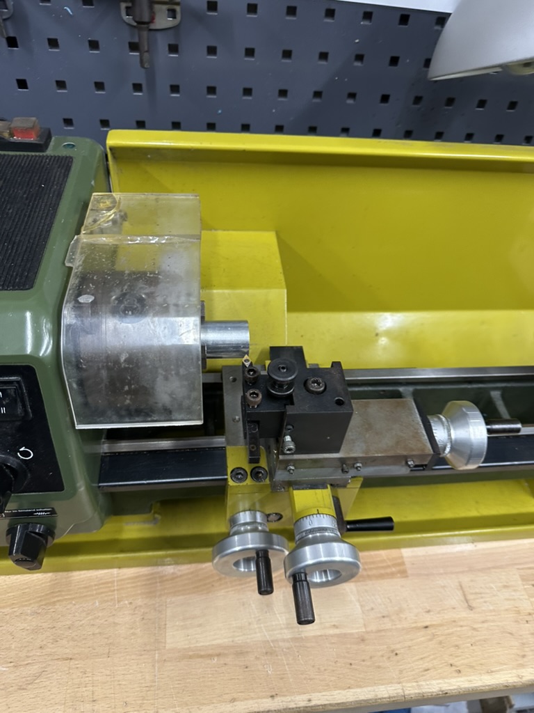 On the conventional milling machine and the lathe, there was much more to learn and try out. After reading and understanding all safety instructions, the first task was to mill a groove into an aluminium block.